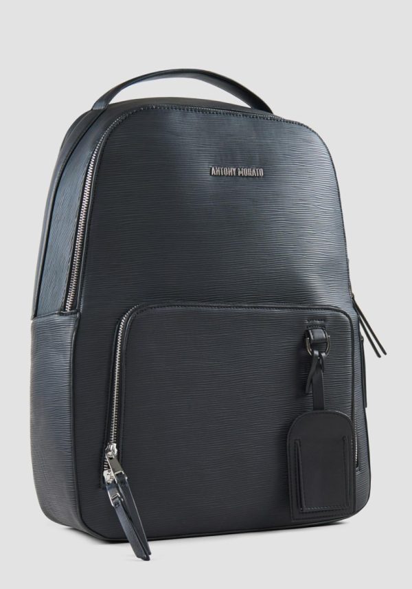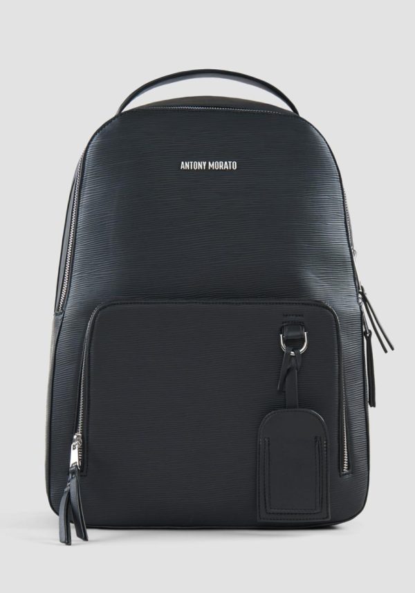 Antony Morato presents this sophisticated backpack crafted from premium palmellato effect fabric, featuring adjustable shoulder straps and dual-access openings with durable metal zippers. The embossed metal logo on the front adds a touch of minimalist elegance, making this the perfect companion for busy days when you need to stay organized without compromising on style. Complete with a convenient front address pocket for quick access to essentials.