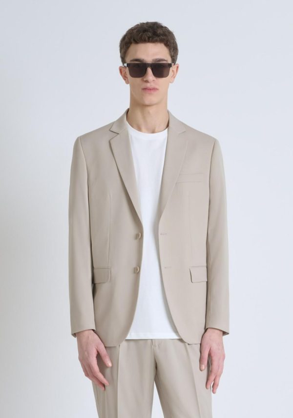 Elevate your style with this sophisticated single-breasted jacket from Antony Morato. Designed with a versatile regular straight fit, this essential outerwear piece features a polished two-button closure and timeless lapels for a refined look. Crafted from a premium stretch viscose blend fabric that moves with you, this jacket includes practical front flap pockets, a convenient breast pocket, and refined four-button sleeve detailing for complete sophistication.