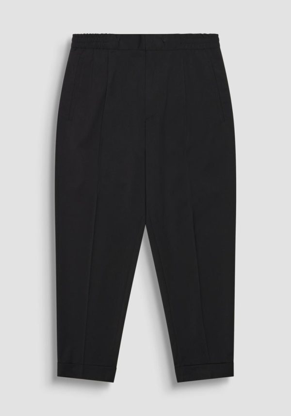 Antony Morato presents these expertly crafted ankle-length trousers featuring a premium solid-color viscose-blend fabric that offers exceptional comfort and movement. The innovative elasticated waistband ensures all-day comfort and perfect fit, while the sophisticated design includes two convenient slant pockets and two refined welt pockets on the back. A subtle logo tab adds the perfect finishing touch to these versatile trousers.