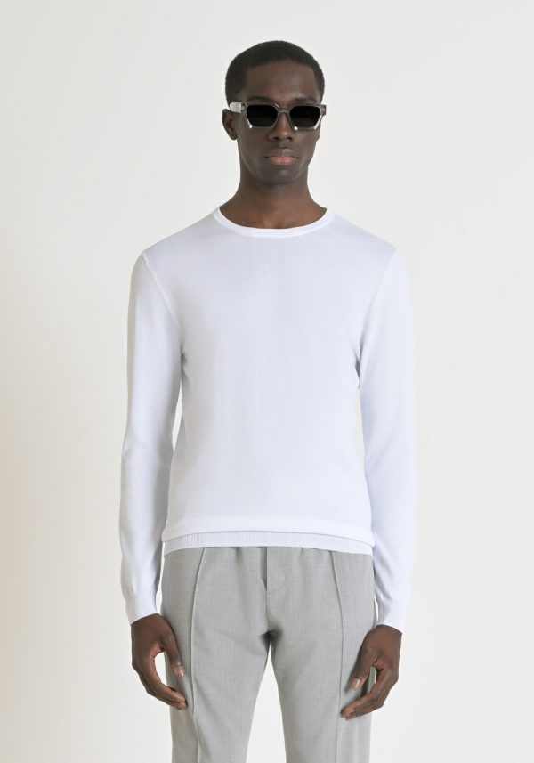 Elevate your everyday style with this sophisticated crew-neck sweater from Antony Morato, designed for ultimate versatility. The precision super slim fit and premium fine yarn construction create a sleek, minimalist aesthetic that transitions effortlessly from casual to dressy occasions. Crafted in a solid color palette, this essential sweater features reinforced ribbing on the collar, hem, and cuffs for lasting structure, plus the signature logo plaque on the back for brand recognition.
