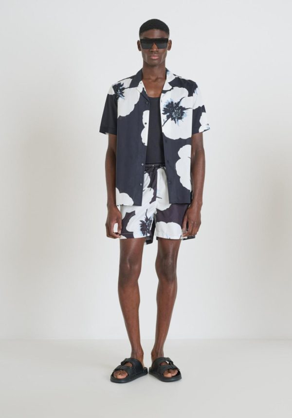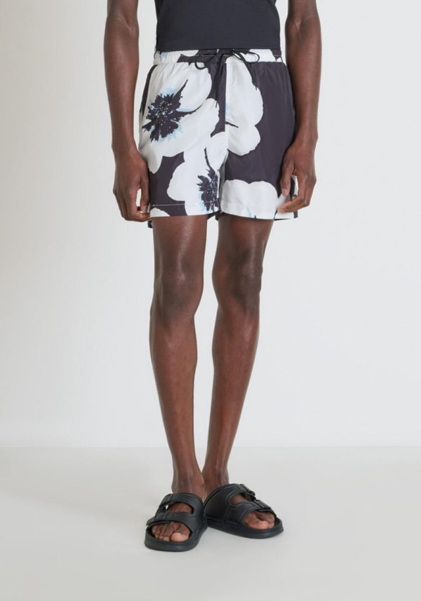 Regular fit swimsuit with macro floral pattern by Antony Morato. This model is made of quick-dry fabric that guarantees rapid drying and enhanced comfort. The model features an adjustable elastic waistband, two side welt pockets and an additional practical pocket with a button closure on the back.