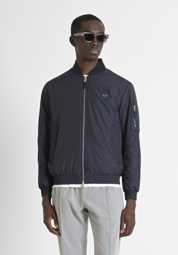 Made of technical fabric, this Antony Morato jacket is perfect for facing windy days thanks to the Sorona® Aura padding, which guarantees both warmth and fluidity of movement. The design is detail-oriented: it has two practical side pockets, a zipped pocket on the arm, and elasticated bomber-style collar, hem and cuffs. The logo plaque positioned on the heart side completes the style of this versatile and comfortable jacket.