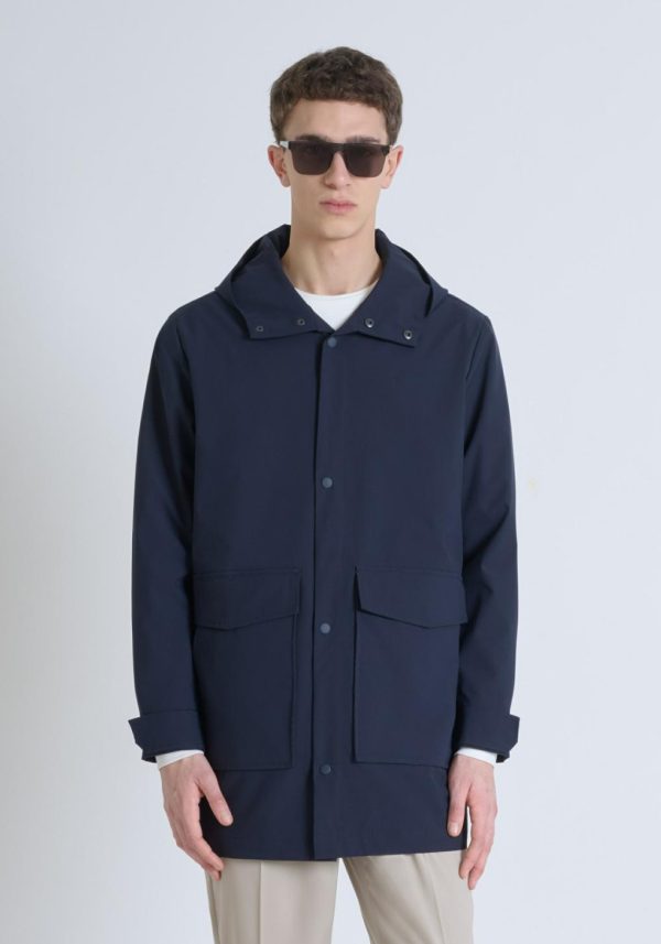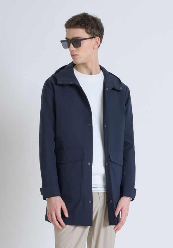 Antony Morato has created outerwear that combines ultimate style and comfort. Made of technical fabric with a relaxed fit, this jacket is the perfect fusion of tradition and modernity. With a meticulous finish and sophisticated details such as the logo plaque on the back, this is a must-have for the contemporary man. The press-stud fastening, flap patch pockets and hood finish off a versatile and timeless design.