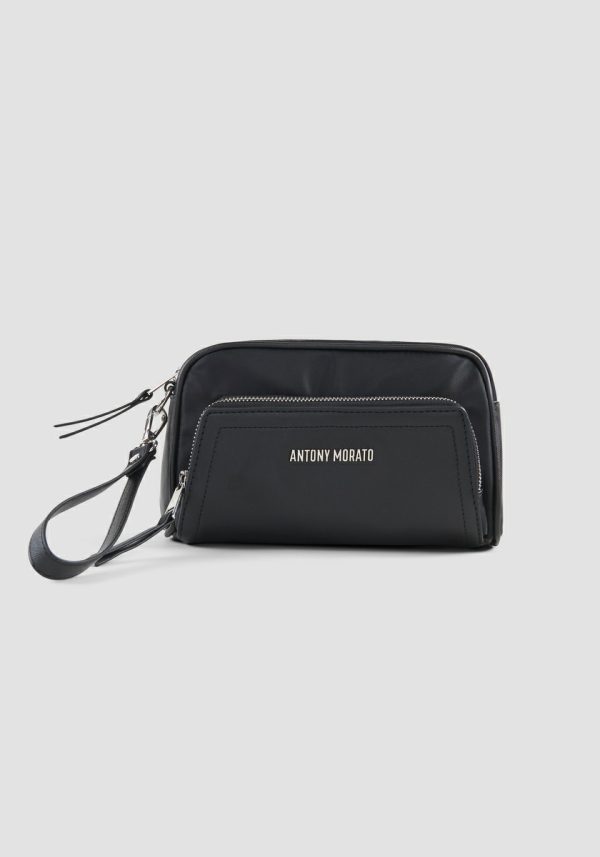 Take everything you need with you in style thanks to this pouch bag by Antony Morato. Made entirely of nylon and faux leather, the accessory comes with a front pocket with a sturdy zip, also present on the main opening. The removable sleeve ensures optimal comfort in every situation, while the metal logo, applied on the front, adds a recognisable and sophisticated touch to the bag.