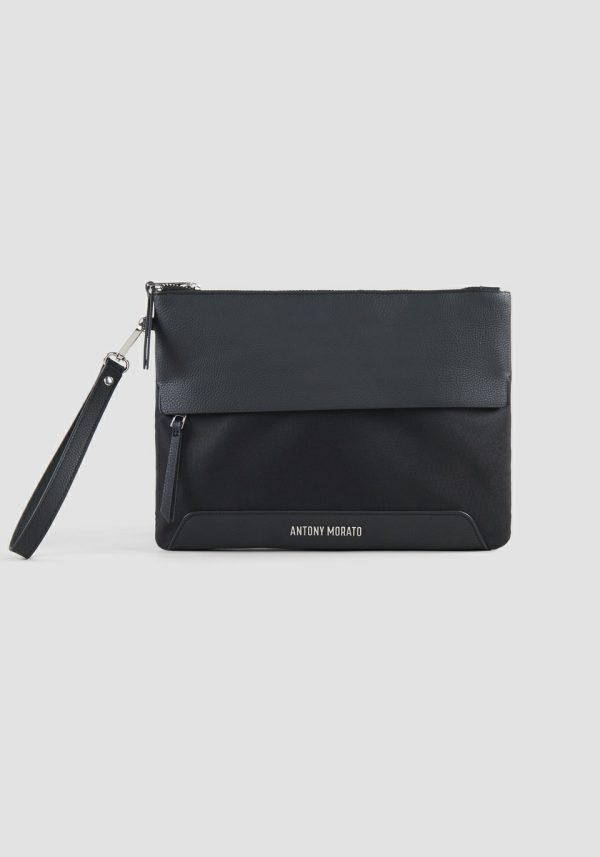 This versatile pouch bag by Antony Morato is enhanced by details in faux leather with a hammered effect. The accessory comes with multiple pockets managed by sturdy zips, essential for organising all your items in an orderly and secure way. A practical sleeve and the embossed metal logo, applied on the bottom, complete this bag, a concentrate of contemporary elegance not to be missed.
