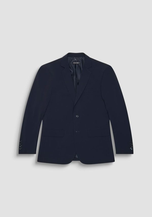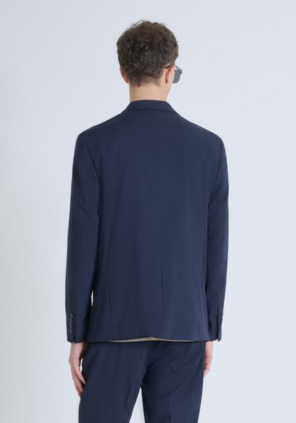 Refresh your wardrobe with this single-breasted jacket by Antony Morato. This outerwear garment features a regular fit with two-button fastening and classic lapels. Made entirely of a soft, solid-colour stretch viscose blend fabric, the style is completed by two flap pockets on the front, a breast pocket and four buttons on the bottom sleeve.