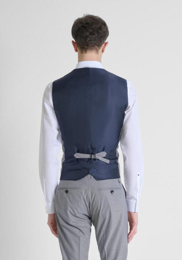 Classic and elegant, the gilet is a timeless piece of menswear. Antony Morato has created this example with a slim fit and a four-button closure. There are three welt pockets on the front, one on the left-hand side of the chest. The back lining is in a contrasting colour and there is a buckle to adjust the garment.
