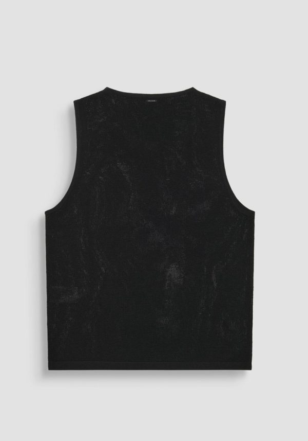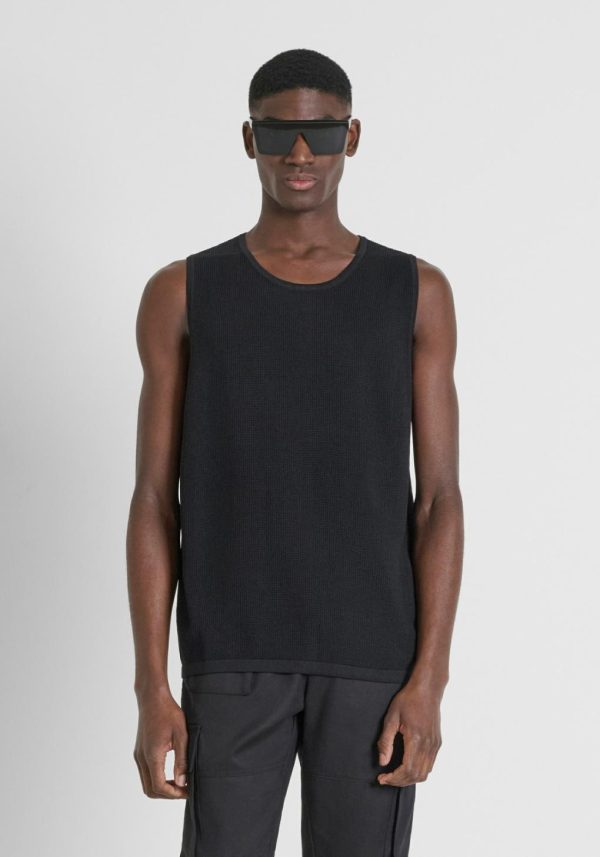 Add a touch of freshness and contemporaneity to your outfits with this regular-fit solid-colour tank top by Antony Morato. The garment is made from a textured viscose-blend fabric and has a ribbed finish on the collar, sleeves and bottom. A small metal logo tab is sewn onto the back.