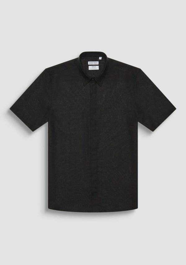 Elevate your warm-weather wardrobe with this sophisticated short-sleeved shirt from Italian brand Antony Morato. Crafted from premium linen-blend fabric with an exceptionally soft hand feel, this regular fit shirt offers timeless style with modern comfort. The refined Italian collar and discreet concealed closure system (with intentional first-button detailing) create a polished look perfect for both casual and dressier occasions. A subtle logo tab on the back adds a touch of brand elegance.