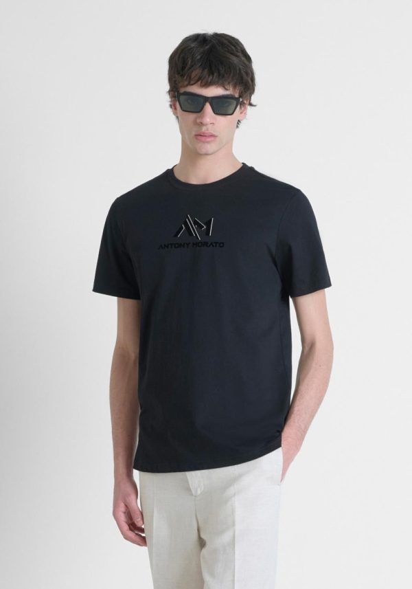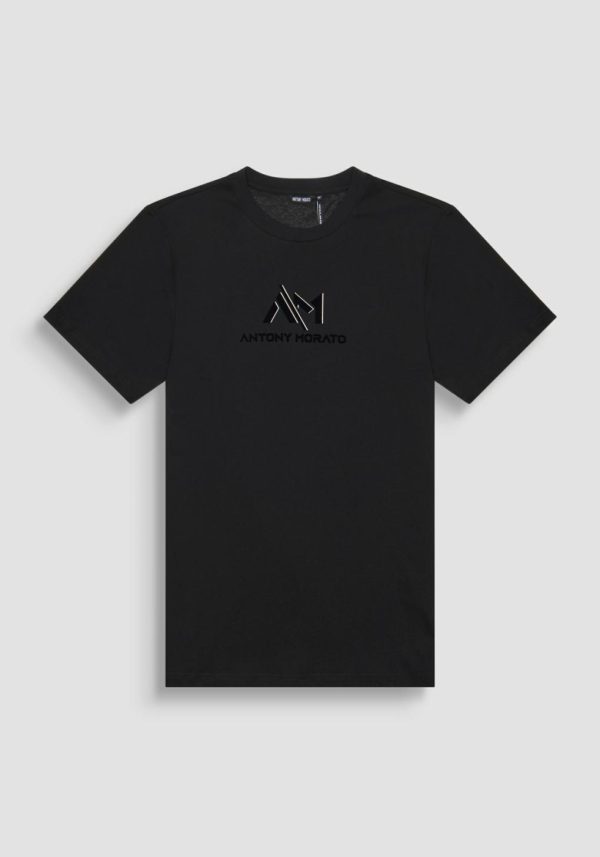 Elevate your casual wardrobe with this premium short-sleeved T-shirt from Antony Morato, crafted from 100% cotton for exceptional comfort and breathability. The standout feature is the striking 3D-effect monogram print on the chest that adds sophisticated style to your look. Designed with a versatile regular fit, this essential T-shirt effortlessly completes your everyday summer outfits with polished comfort.
