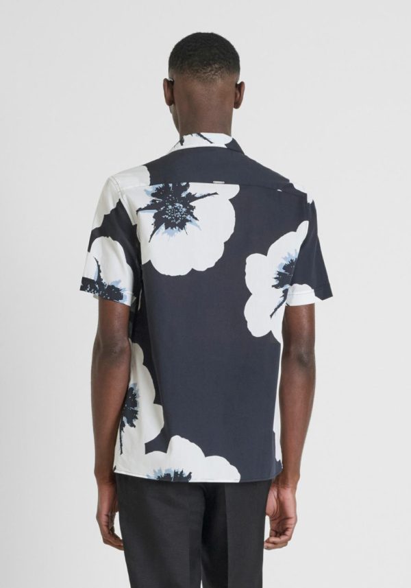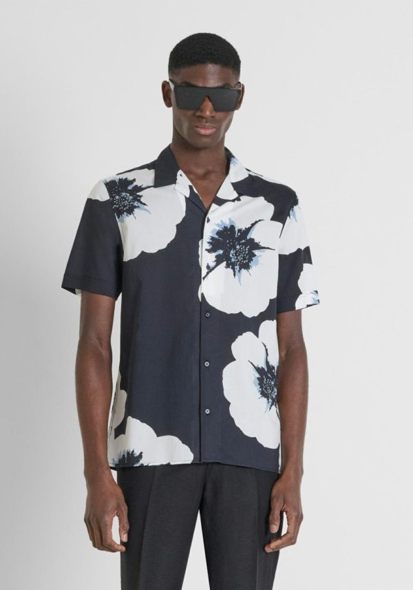 Discover this vintage-inspired short-sleeved shirt featuring exquisite Sicilian majolica-inspired prints that make a bold style statement. Crafted from premium viscose and cotton blend for exceptional comfort and breathability. Features a stylish camp collar with wide lapels and a straight fit design that provides a modern, relaxed silhouette. The subtle metal logo tab adds sophisticated branding detail. Perfect for creating effortless casual looks when worn solo or layered over your favorite tee.