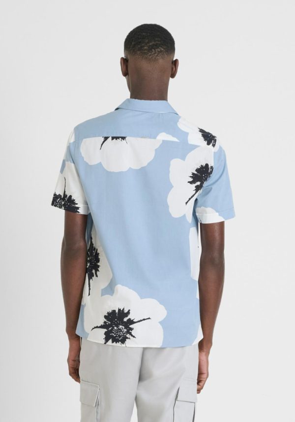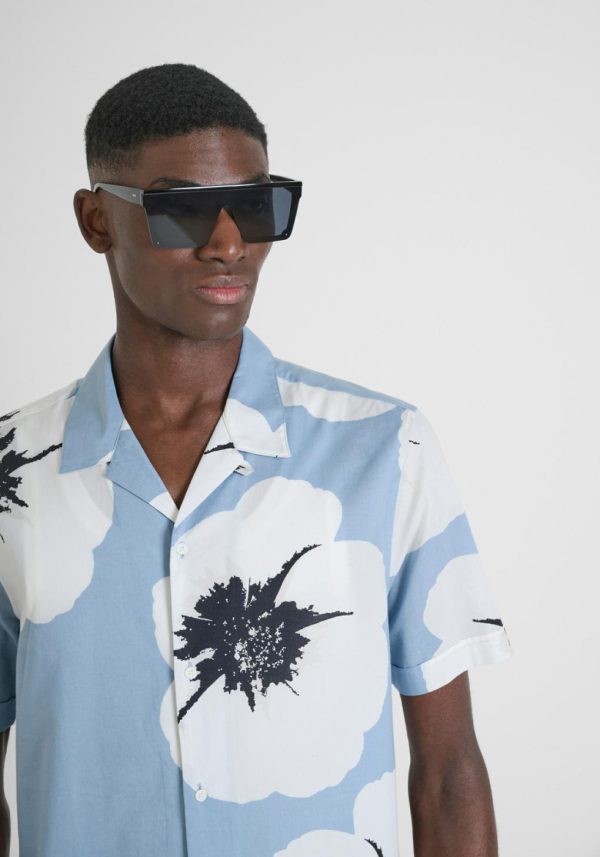 Discover this vintage-inspired short-sleeved shirt featuring exquisite Sicilian majolica-inspired prints that make a bold style statement. Crafted from premium viscose and cotton blend for exceptional comfort and breathability. Features a stylish camp collar with wide lapels and a straight fit design that provides a modern, relaxed silhouette. The subtle metal logo tab adds sophisticated branding detail. Perfect for creating effortless casual looks when worn solo or layered over your favorite tee.