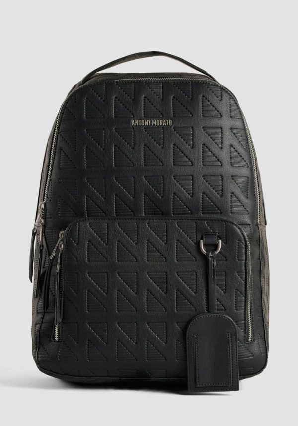 Men’s Geometric Pattern Faux Leather Backpack by Antony Morato