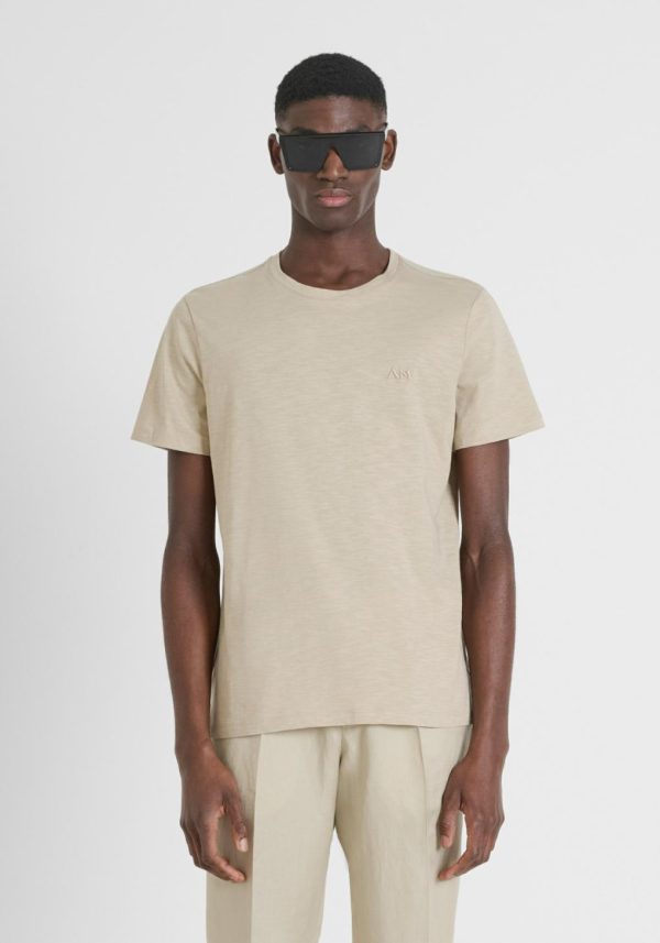 Elevate your everyday style with this premium crew-neck T-shirt crafted from exceptionally soft slub cotton fabric. Designed with a versatile regular fit that’s perfect for standalone wear or as a reliable base layer. Features a subtle yet sophisticated Antony Morato logo meticulously embroidered on the front for understated elegance.