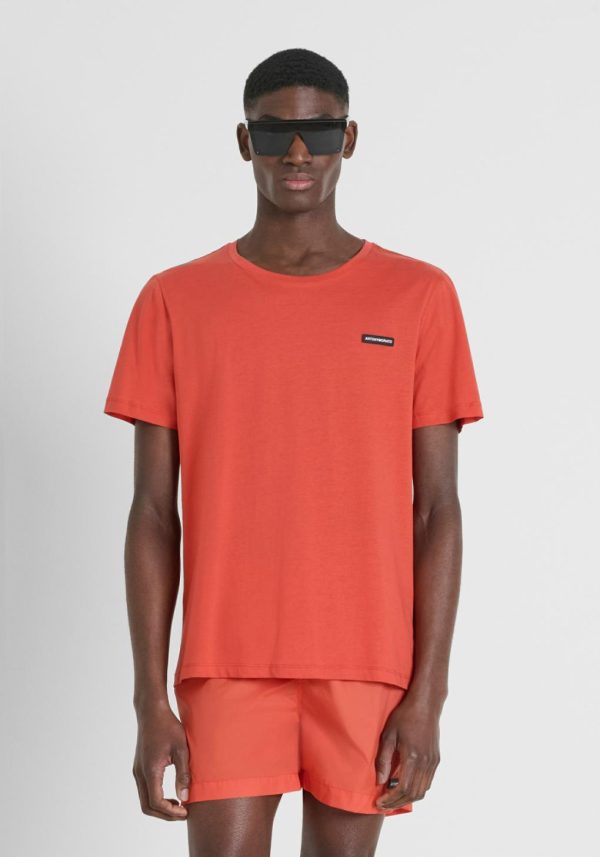 Men’s Regular Fit Cotton T-Shirt with Rubber Logo Patch