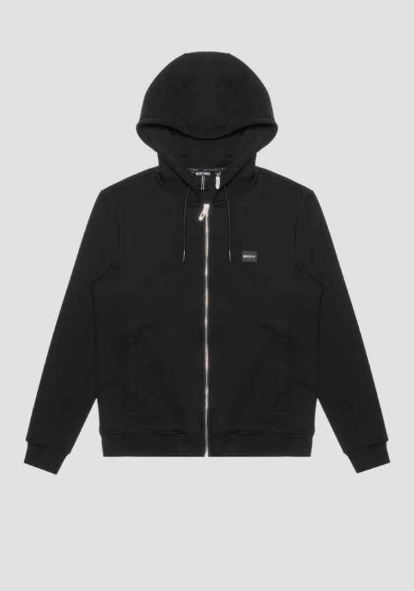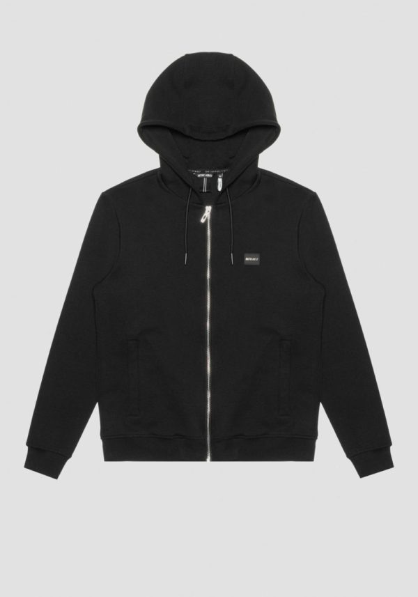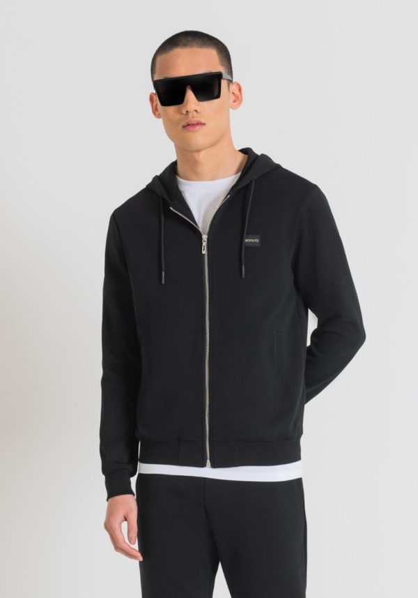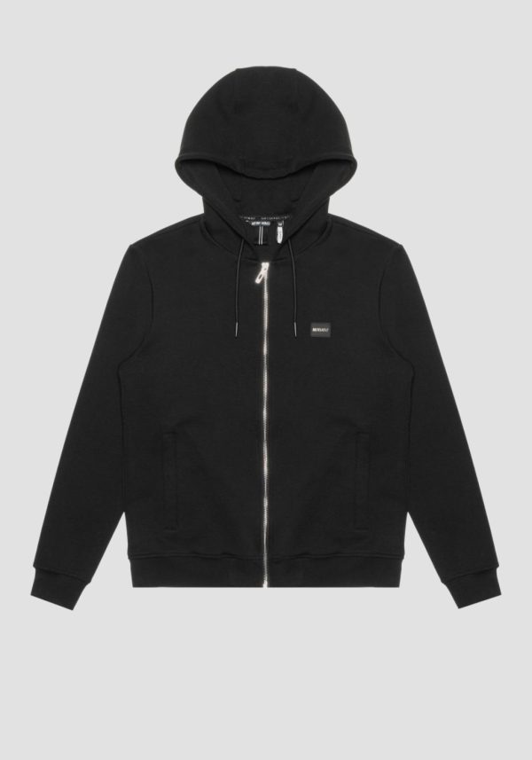 Elevate your casual wardrobe with this Antony Morato streetwear hoodie featuring an adjustable drawstring. Crafted from a premium cotton blend fabric with a slim, tailored fit, it offers a modern minimalist silhouette that’s perfect for creating stylish everyday looks. This standout piece is accentuated by a distinctive metal logo plaque on the left chest and a sleek metal zipper for secure closure.
