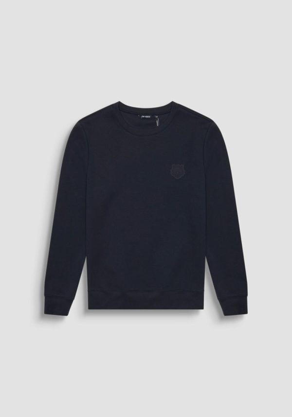 Elevate your spring wardrobe with this essential crew-neck sweatshirt crafted from a premium cotton blend in a versatile solid color. Featuring a modern slim fit that complements your physique, this sweatshirt showcases a sophisticated tone-on-tone tiger patch appliqué on the chest for a distinctive look. The elasticated hem and cuffs ensure a secure, comfortable fit while the embossed logo on the back adds a final touch of brand authenticity.