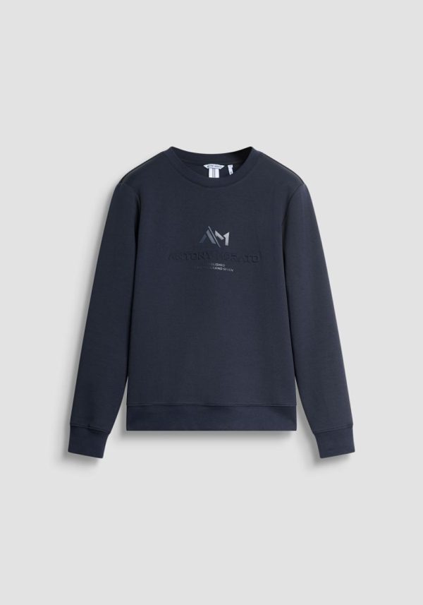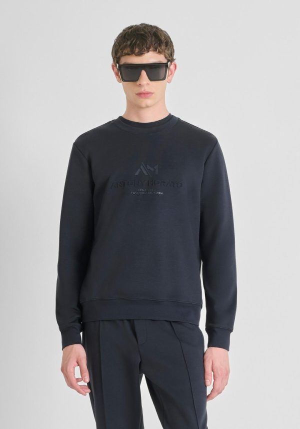 Elevate your everyday style with this slim fit crewneck sweatshirt crafted from premium cotton blend fabric. Features elastic knit cuffs and bottom for a secure fit, plus a subtle logo detail on the chest. Designed with classic, clean lines that make it an essential wardrobe staple for versatile daily wear.