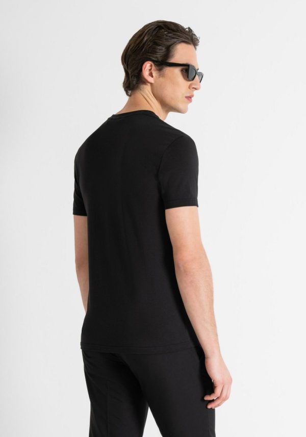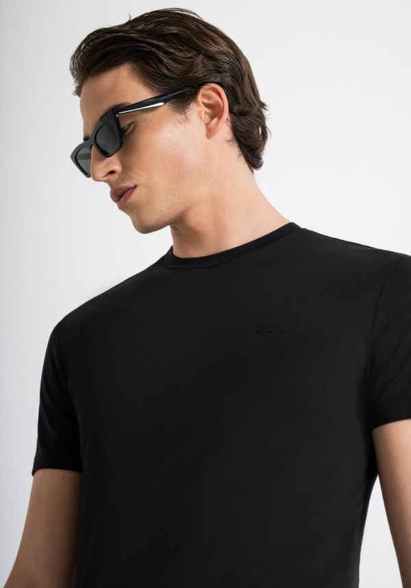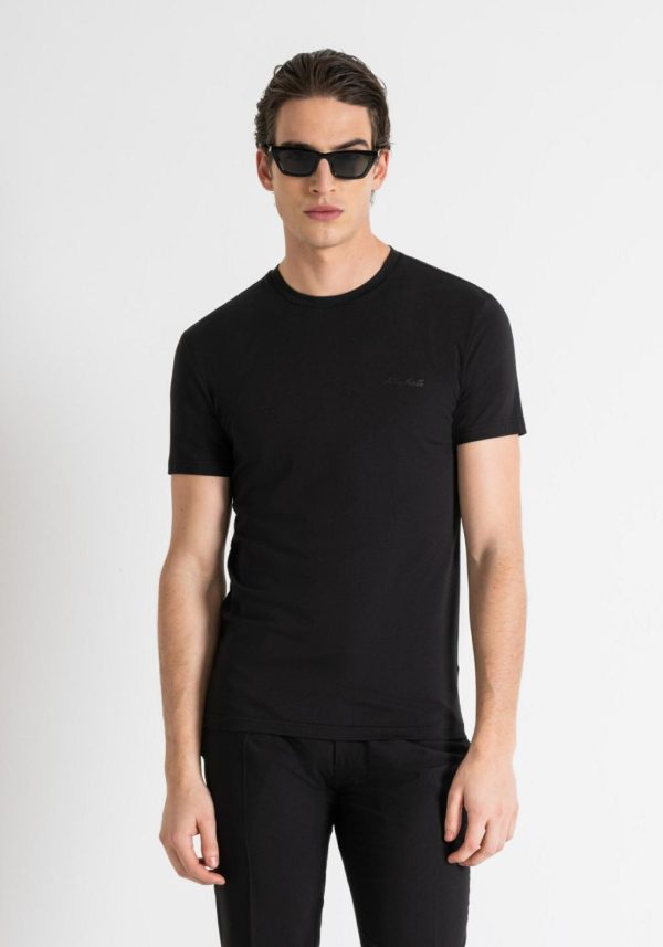 Elevate your everyday style with this premium short-sleeved crew-neck t-shirt featuring a sleek super slim fit. Crafted from exceptionally soft stretch cotton jersey that moves with you, this shirt delivers all-day comfort with a lightweight feel. The solid color design is accented with a subtle logo print on the left chest for a sophisticated touch.