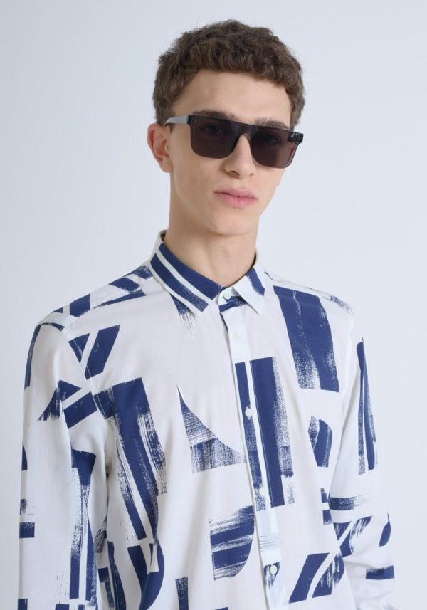 Discover the cotton and viscose blend shirt by Antony Morato, perfect for a contemporary and casual look. The straight cut and comfortable fit make it ideal for any occasion. With a button placket, classic pointed collar and straight bottom, the garment features an all-over geometric pattern that adds a touch of individuality, making it a must-have in your wardrobe.