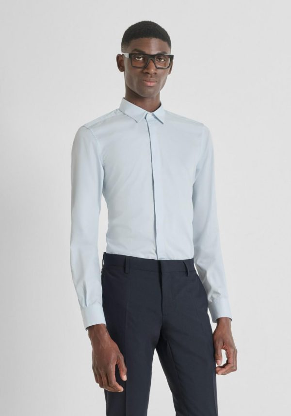 Slim-fit shirt made of easy-iron soft-touch pure cotton. With an Italian collar, the garment features a concealed button closure. This elegant and sophisticated shirt by Antony Morato is a must-have in your wardrobe, capable of elevating even the most casual looks.