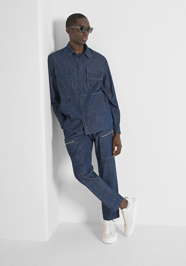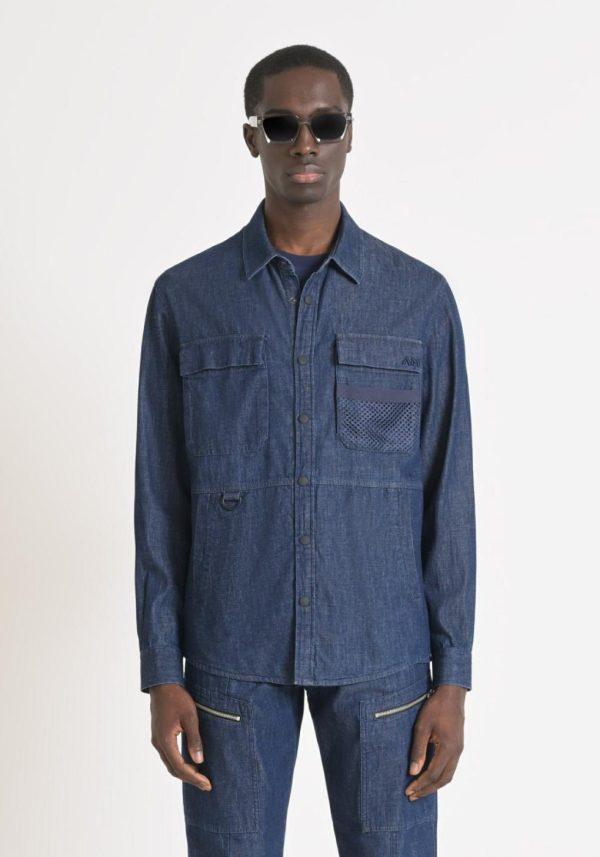 REGULAR-FIT DENIM SHIRT WITH LOGO EMBROIDERY AND POCKETS