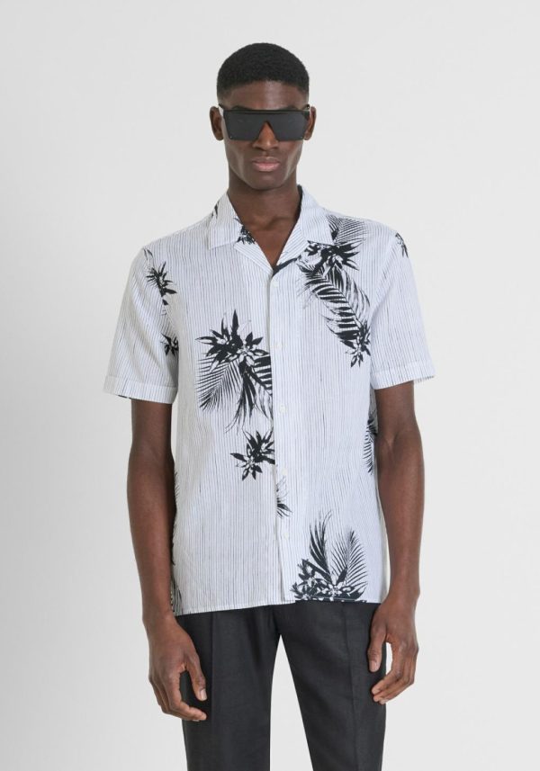 Shirts | Men Antony Morato REGULAR STRAIGHT FIT SHIRT “HONOLULU” IN PRINTED COTTON LINEN BLEND