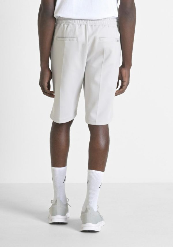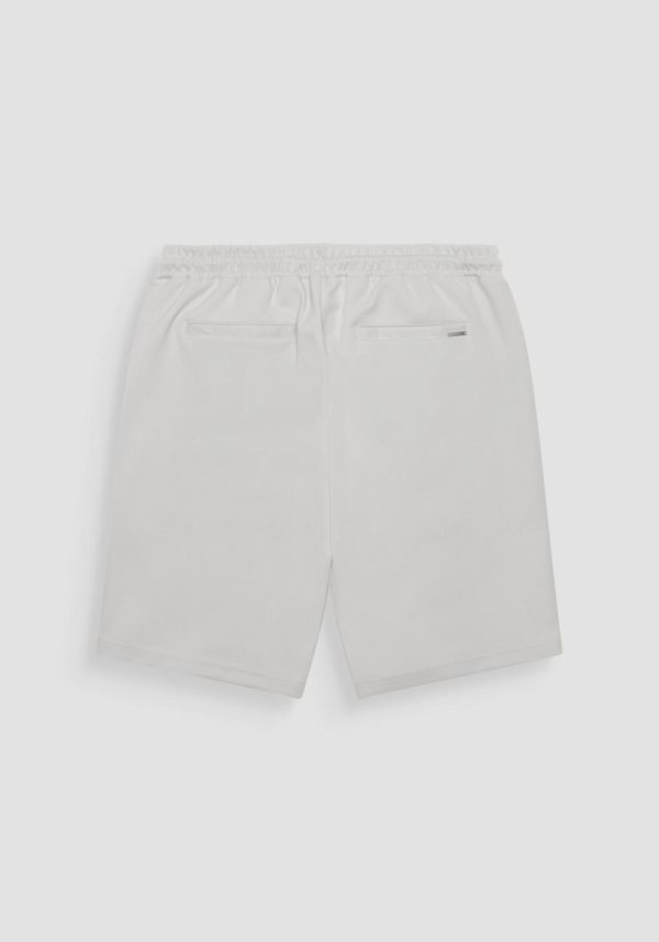 Every detail of these shorts by Antony Morato has been carefully designed. They have two slash pockets on the sides and two welt pockets on the back, with a metal logo tab. The logo embroidered on the bottom left is another refined and distinctive element, as are the two central seams that run the length of the garment. The elasticated waist with adjustable drawstring ensures a personalised and comfortable fit to the regular cut of these summer shorts.