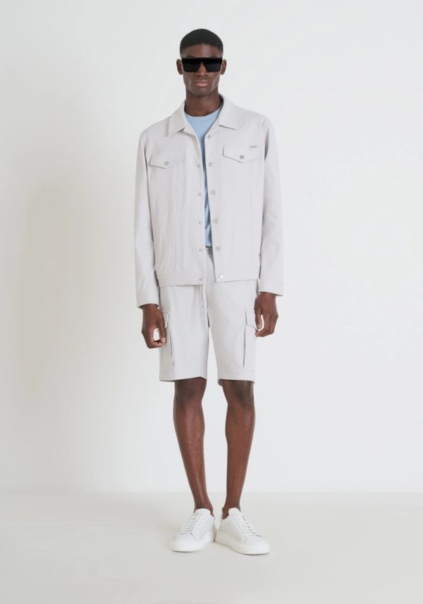REGULAR FIT JACKET IN COTTON TWILL WITH METAL LOGO