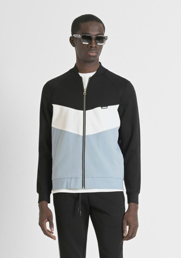 This zip-up sweatshirt by Antony Morato is the perfect choice for your casual and contemporary style. With a regular fit and a horizontal colour block design, it offers a modern and dynamic look. There is a logoed patch on the heart side, which adds a distinctive touch. A versatile garment, ideal for those looking for comfort without ever sacrificing style.