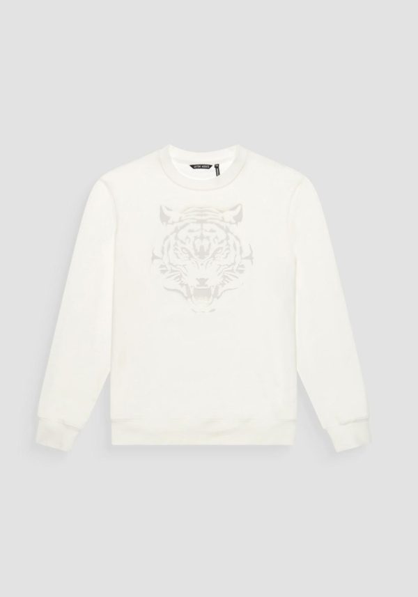 This crewneck sweatshirt from the new Antony Morato Collection features a regular fit, and is made from a solid-colour cotton blend with elasticated hem and cuffs. The distinctive tiger print on the front makes the garment the right choice to complete all your daily looks in style.