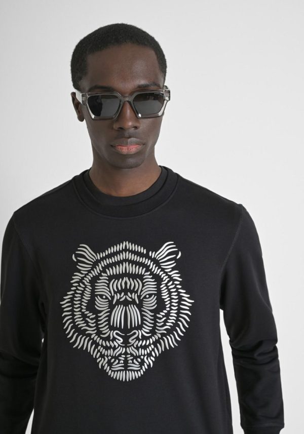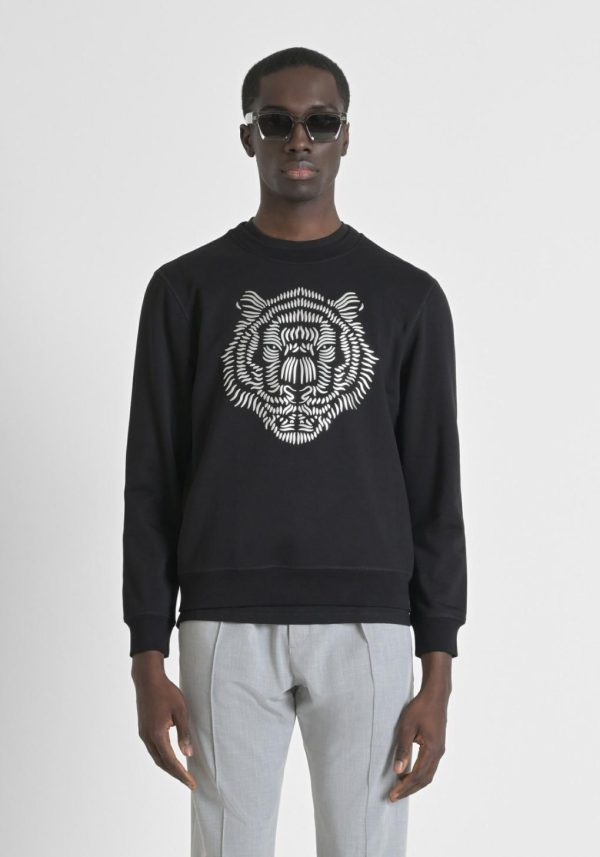 Antony Morato has created this regular fit crewneck sweatshirt in a soft cotton blend fabric. Additional comfort is provided by the elastic bands on the collar, hem and cuffs. The design features an embossed logo on the back and a tiger print on the front, making the item the ideal choice to complete any casual look.