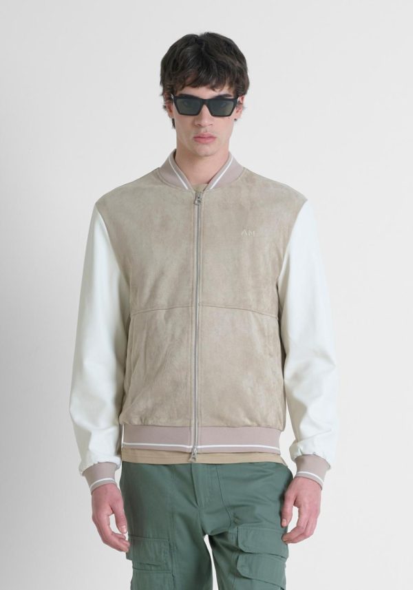 Elevate your style with this regular-fit sweatshirt by Antony Morato. The design, reminiscent of the classic varsity-style bomber jacket, features suede effect on the main panel and faux leather sleeves. The collar, cuffs and hem are defined by a stripe that adds a sporty and dynamic touch to the garment. The style is completed by the embroidered logo on the heart side.