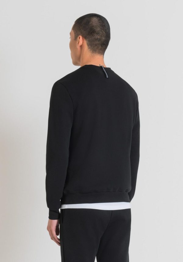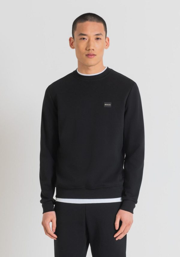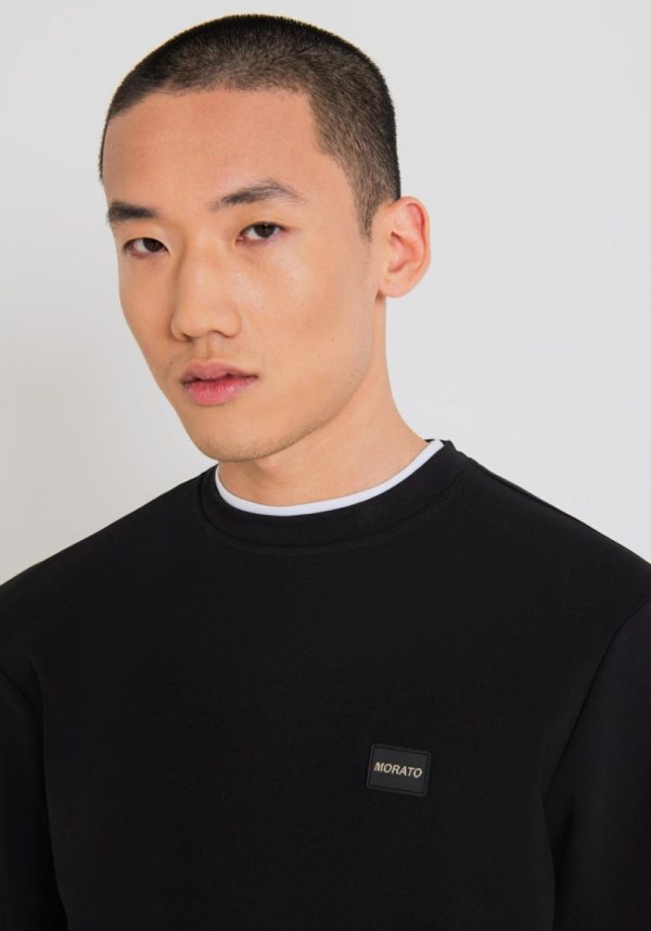 Antony Morato presents this solid-colour crew-neck sweatshirt with minimal lines. The model is designed with a tight fit and is made of a soft cotton blend fabric. This is a garment with an urban style that stands out thanks to its attention to detail, such as the contrasting stripe on the back of the neck and the logo with a rubberised base applied on the left-hand side.