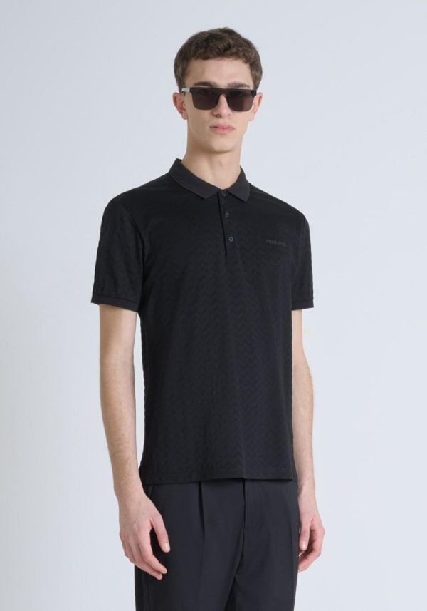 T-shirts And Polo | Men Antony Morato PURE COTTON SLIM FIT POLO SHIRT WITH ALL-OVER GEOMETRIC PATTERN AND EMBOSSED LOGO