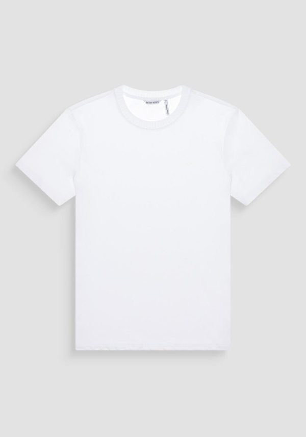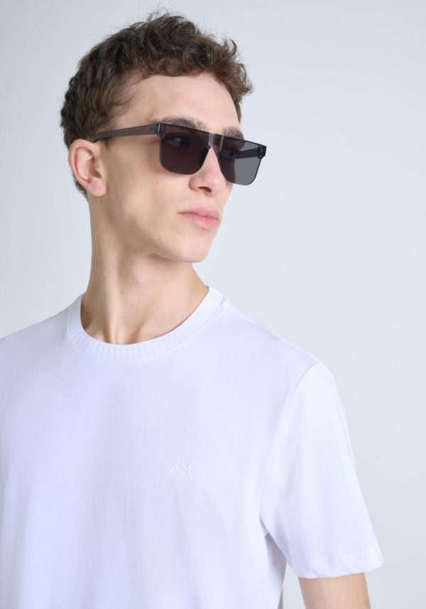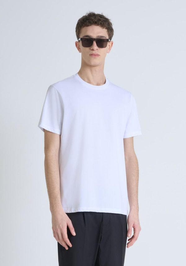 Regular fit T-shirt made entirely of solid-colour cotton jersey. The minimalist design is enhanced by the ribbed collar and the tone-on-tone monogram on the left-hand side of the chest. This T-shirt is a wardrobe must-have: versatile and easy to match with your daily outfits, it will add a touch of sophistication to even the most basic looks.
