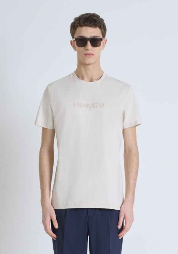 Add this crew-neck T-shirt, made entirely of soft cotton jersey, to your collection. Available in a solid colour, the garment features a minimalist design with a tone-on-tone embossed logo on the chest. The regular fit completes this T-shirt, a must-have by Antony Morato.