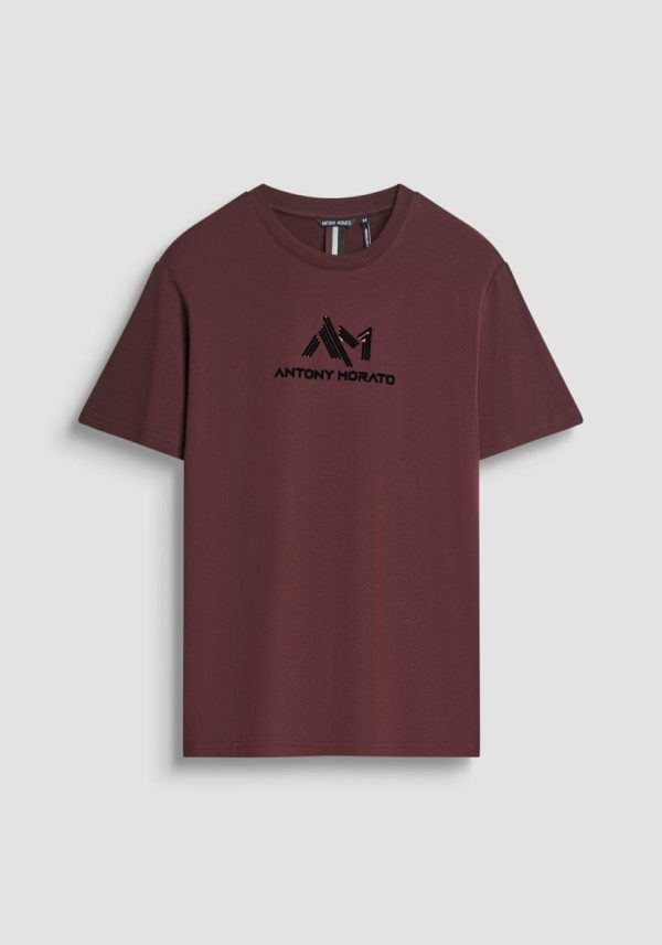 Regular fit crew neck t-shirt, made of soft cotton jersey fabric. Matt print on the front in contrasting colour with the lettering of the Antony Morato logo.