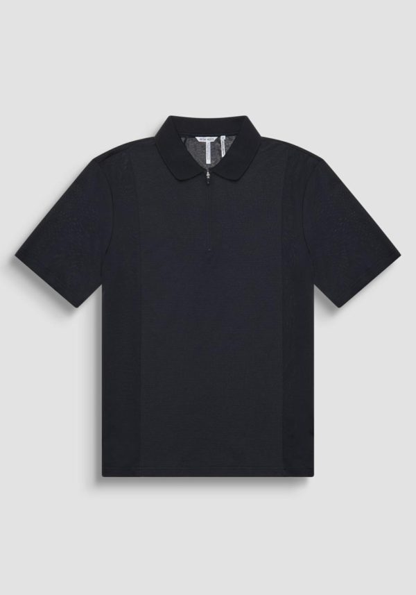 Update your style with this Antony Morato polo shirt made entirely of comfortable cotton jersey. The design plays with textures and shades, adding a touch of originality and sophistication to the garment. The practical and functional zip closure, the side slits on the hem and the embossed logo on the back of the neck complete the model, making it perfect for a casual but well-groomed look.