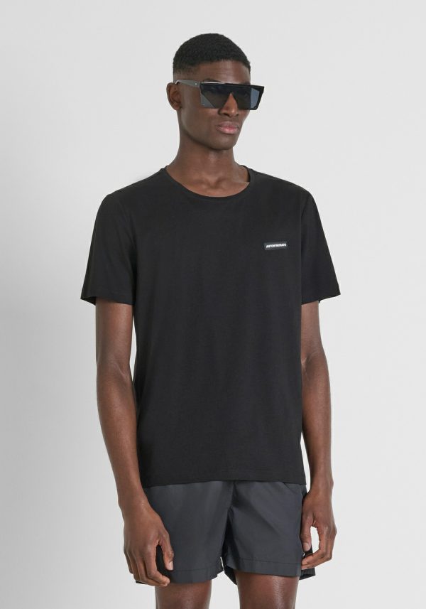 Regular-fit crew-neck T-shirt in soft cotton with rubber logo patch sewn on the chest. A perfect companion for your summer days, to be worn on any occasion.