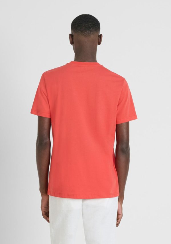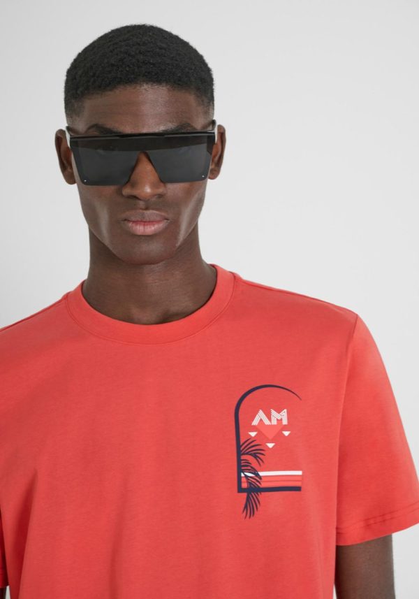 Regular-fit crew-neck T-shirt in soft and lightweight cotton. The standout feature of this T-shirt is the print on the chest that incorporates the Antony Morato logo and embellishes it with essential elements reminiscent of an open window overlooking the sea on a summer afternoon.