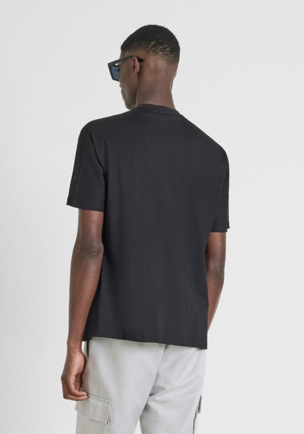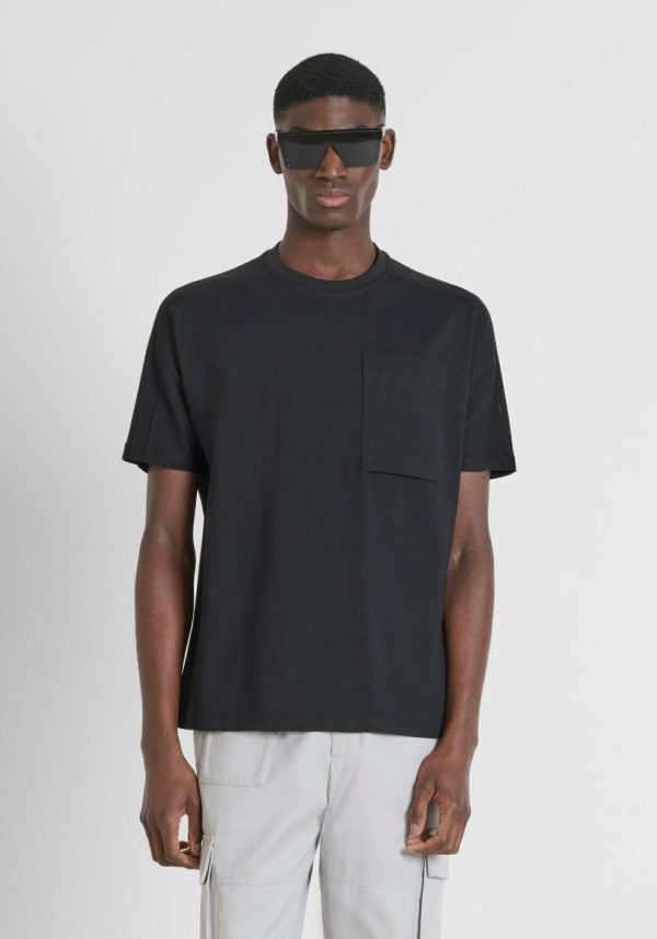This Antony Morato T-shirt will become the star of your summer wardrobe. This is thanks to the perforated design that highlights the shoulders and sleeves of the garment: a stylish detail, ideal for facing the summer in style. Made entirely of solid-colour cotton jersey, this short-sleeved T-shirt is designed with a relaxed fit and a tone-on-tone breast pocket on the left-hand side. The metal logo tab, sewn on the back of the neck, adds a distinctive touch to the T-shirt.