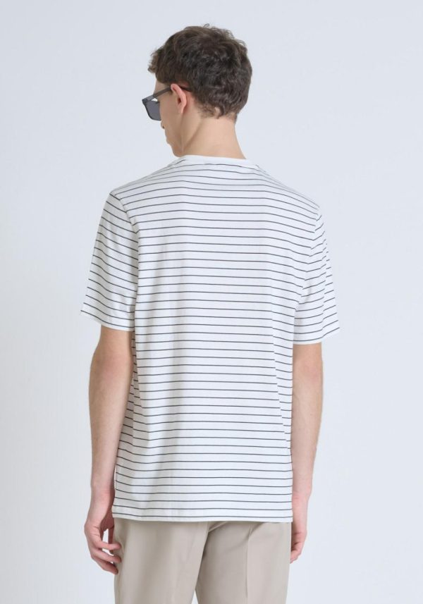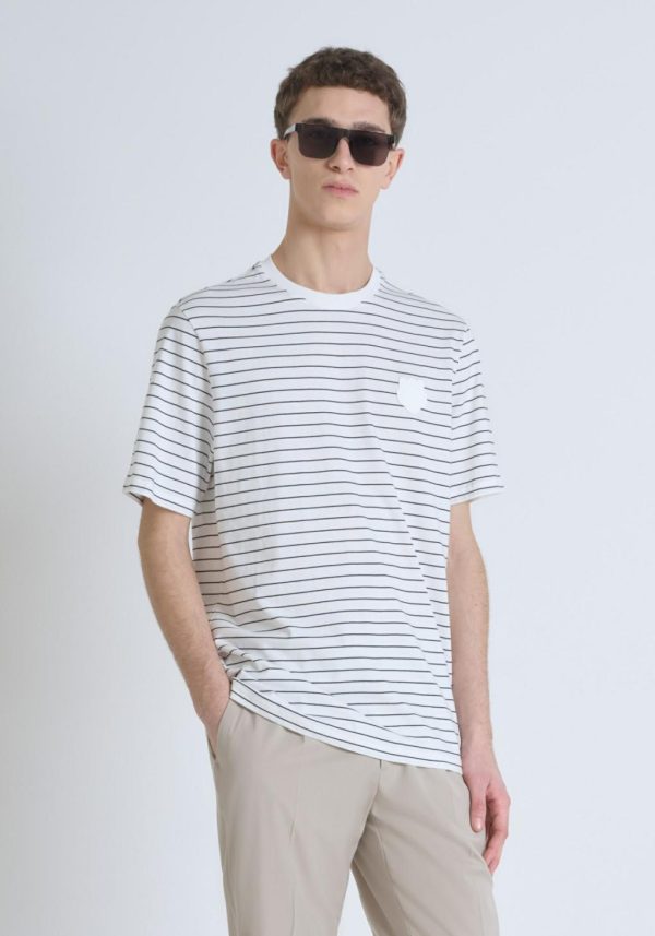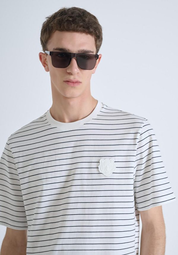 This short-sleeved T-shirt by Antony Morato is made of 100% cotton. Designed with a relaxed fit, it features a horizontal striped pattern and a rubberised tiger patch on the heart side. A casual garment perfect for completing your urban-style outfits.