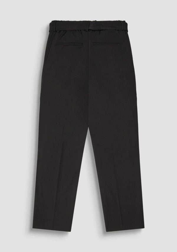 Pants with relaxed fit, with wide leg. Made of comfortable viscose elastic mix, to accompany every movement. Closure with zip and button, elastic on the back. Two side fillet pockets.