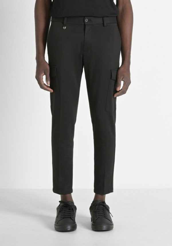 For those who don’t want to sacrifice style even in their leisure time, Antony Morato has created these trousers in a stretch cotton-blend fabric. With a slim fit, they are perfect for those who want to show off their figure. The garment stands out thanks to its multitude of pockets: two slash pockets, two welt pockets with a button on the back and two large pockets with a flap along the leg.