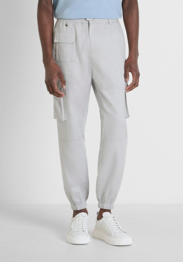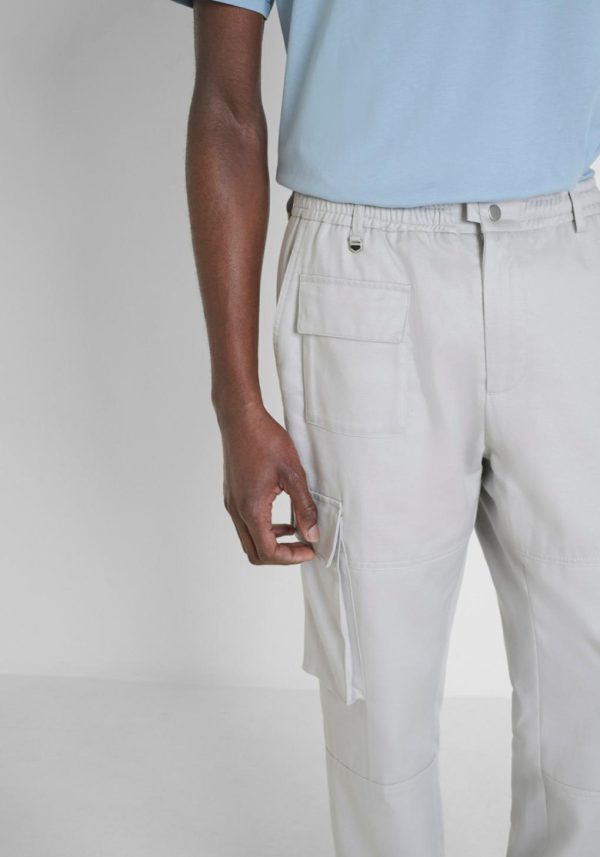 Designed by Antony Morato, these trousers are perfect for a refined and stylish look even in your leisure time. Made of cotton-blend fabric, they have a regular fit. The garment has two slash pockets, one flap pocket on the front and one on the back, and two flap pockets along the leg. The trousers are completed by an elasticated waistband and ankles.