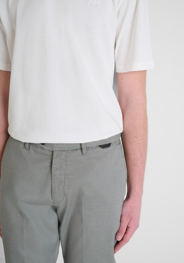 These trousers are perfect for accompanying you throughout the day, from work to leisure time. Antony Morato has made them in a soft, stretchy cotton-blend fabric with a close fit. The garment’s design features four pockets – two slash pockets and two welt pockets with button on the back – and a concealed zip and asymmetrical button closure.