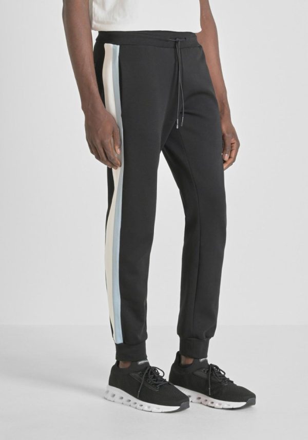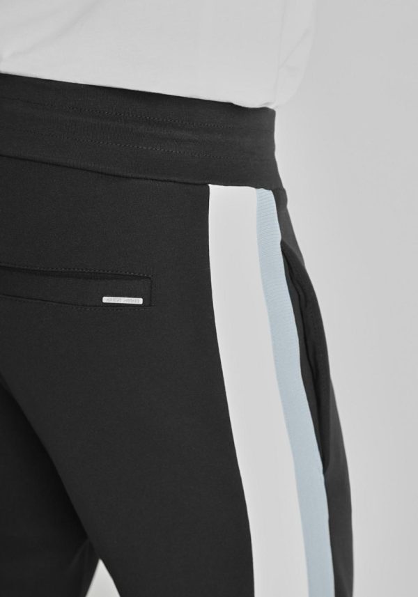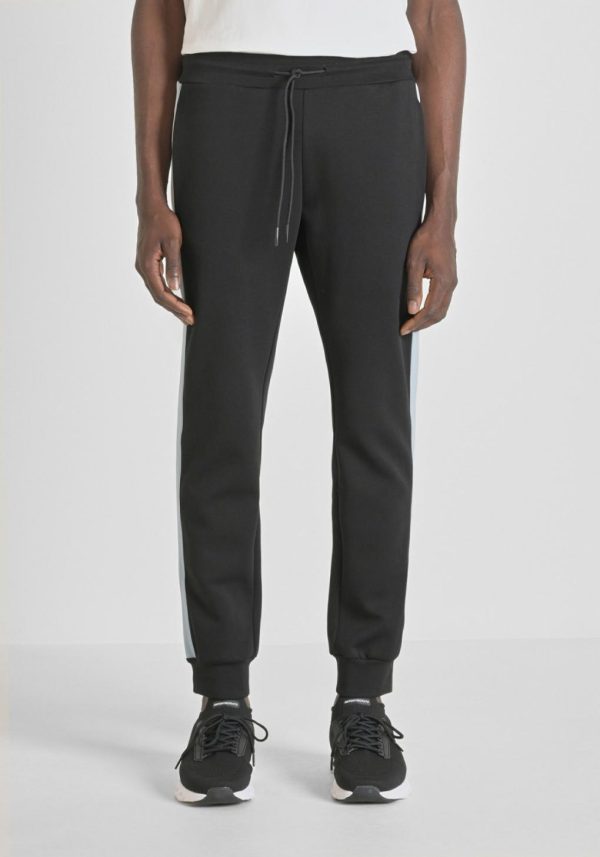 Soft sweatpants fashioned in cotton blend fabric. The slim fit of the garment is made more comfortable by the elasticated waistband with adjustable drawstring and leg bottom. Two-coloured side bands and the logo plaque applied to the rear welt pocket complete the design.